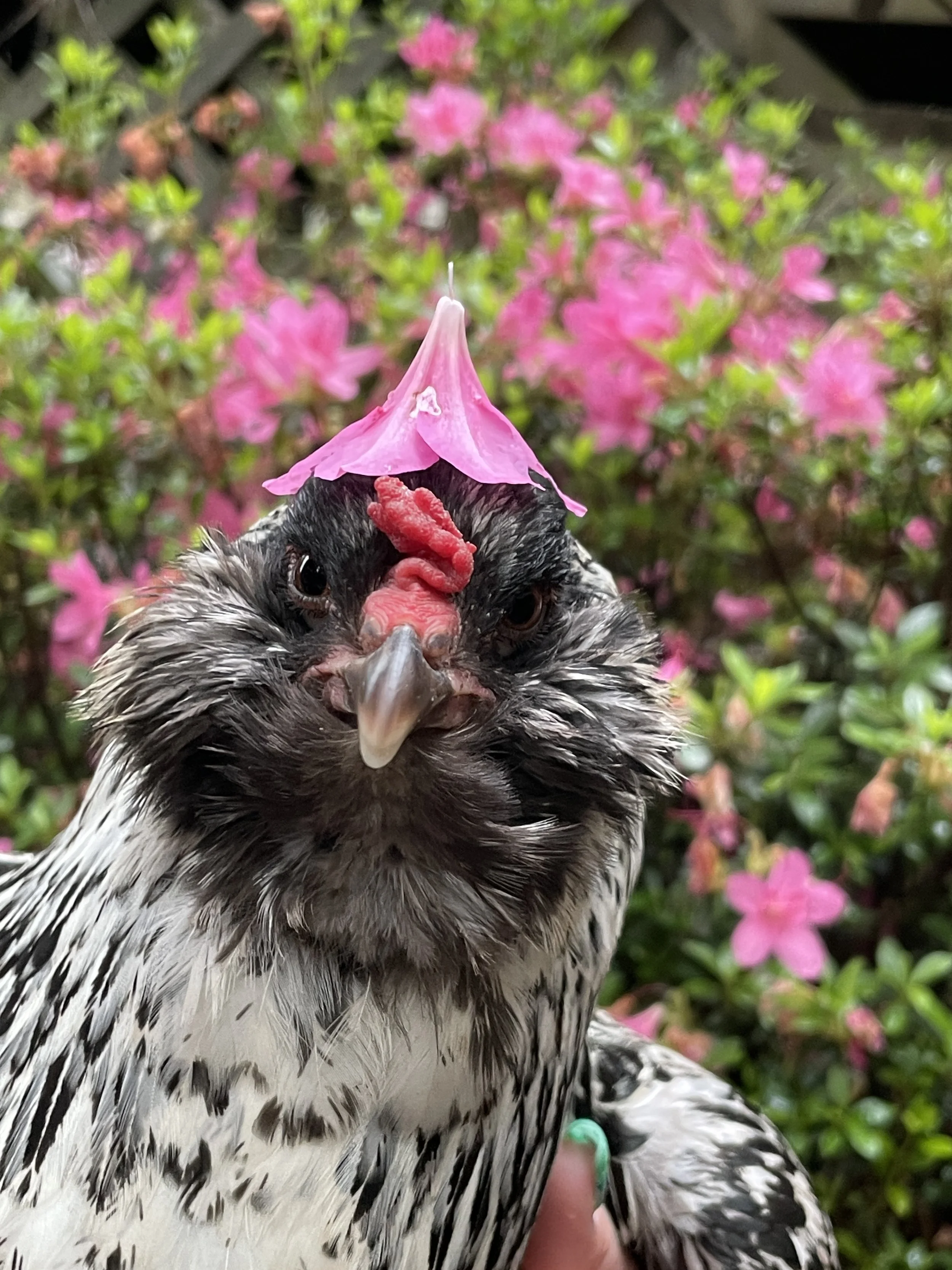 Rita is a beautiful, tiny Easter Egger hen with a big personality! She lays medium to large blue eggs. Rita is the smartest of the Fab Flock, making her very mischievous. She demands snuggles from her dad before bed every night! She loves cuddles and attention overall. She is second in charge, making her the beta hen. She would love to be the head hen, but Sadie is the queen!